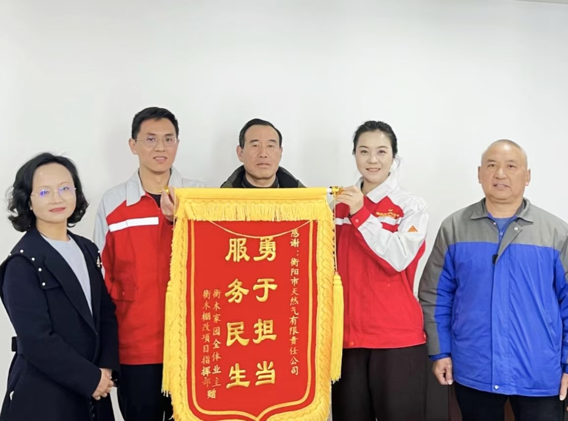 "再也不用扛著煤氣罐爬樓了!"12月15日,市天然氣公司辦公室暖意融融。衡木家園居民代表手持一面繡著"勇于擔(dān)當(dāng) 服務(wù)民生"金色大字的錦旗,送到工作人員的手中,表達(dá)誠摯謝意。這份來自基層的特別禮物,見證了市天然氣公司與當(dāng)?shù)鼐用褚坏篮狭?jiān)"瓶改管"的暖心故事。